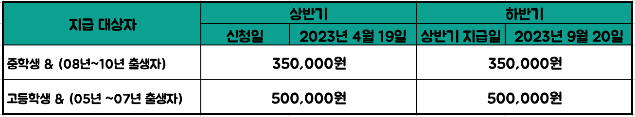 상반기 지급기준은 신청일부터 4.19까지 경기도 내에 주민등록을 둔 이에 한하며 하반기 지급기준은 상반기 지급일(2023년 4월 26일 예정)로부터 2023년 9월 20일까지 경기도 내에 주민등록을 둔 이만 지급됩니다.